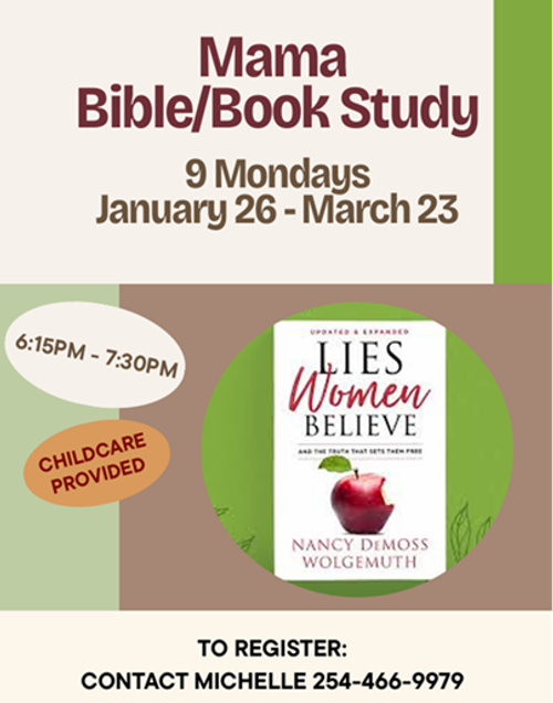 Join us for a Mama Bible/Book Study going through Lies Women Believe by Nancy Demoss Wolgemuth!
