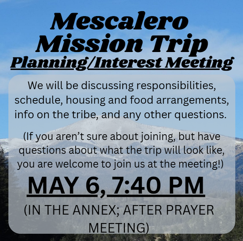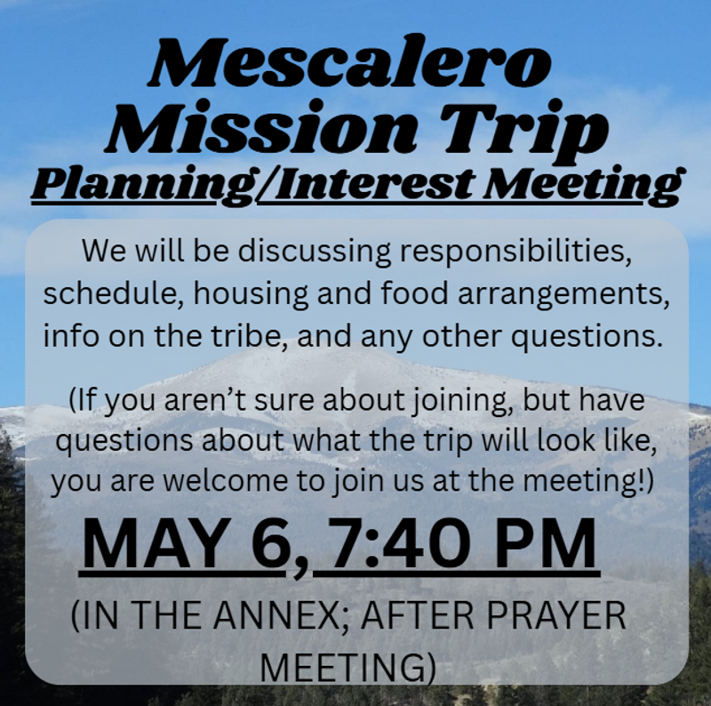 We will be going to work in Mescalero, New Mexico. We will partner with the Mescalero Reformed Church in hosting their VBS, which is located on the Mescalero Apache Indian Reservation.